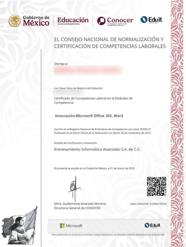 Validación de Competencias: Implementamos los 16 estándares de CONOCER + Microsoft para asegurar que cada colaborador sea un experto en su área.